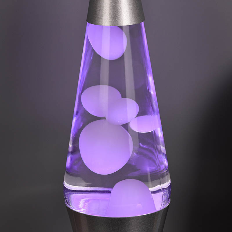 CC 24 VLa lámpara de lava LED RGB de 15 pulgadas tiene un enchufe de alta potencia en color violeta. Carcasa de aluminio violeta, cera violeta, cuando se enciende, lámpara de cera violeta pura.