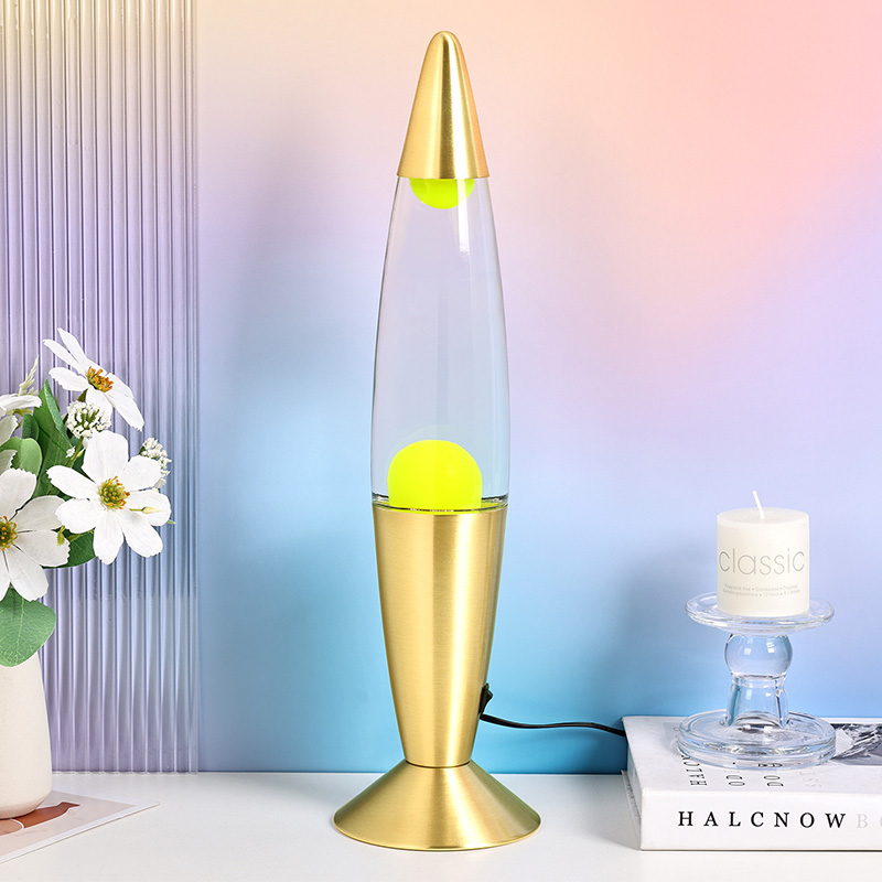 24VLa lámpara de cera de lámpara de lava naranja de lujo de 16 pulgadas tiene agua pura dentro del vidrio transparente y cera verde en el interior. Después de calentarse, la cera flota de forma irregular en el agua, lo que es muy apreciado.