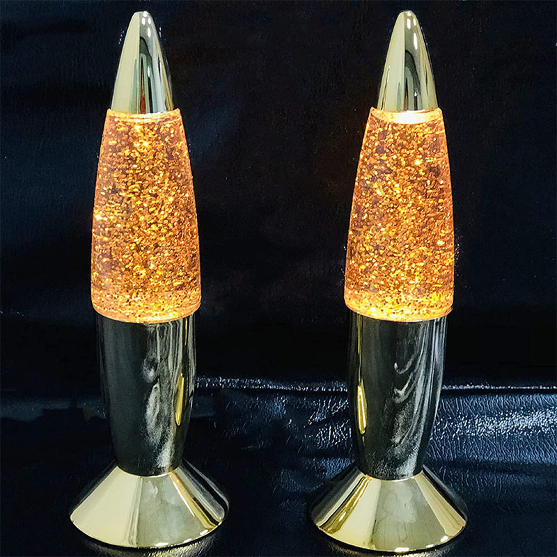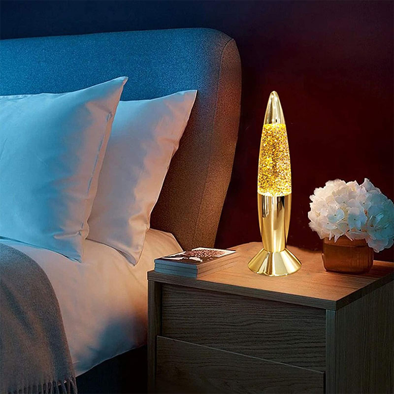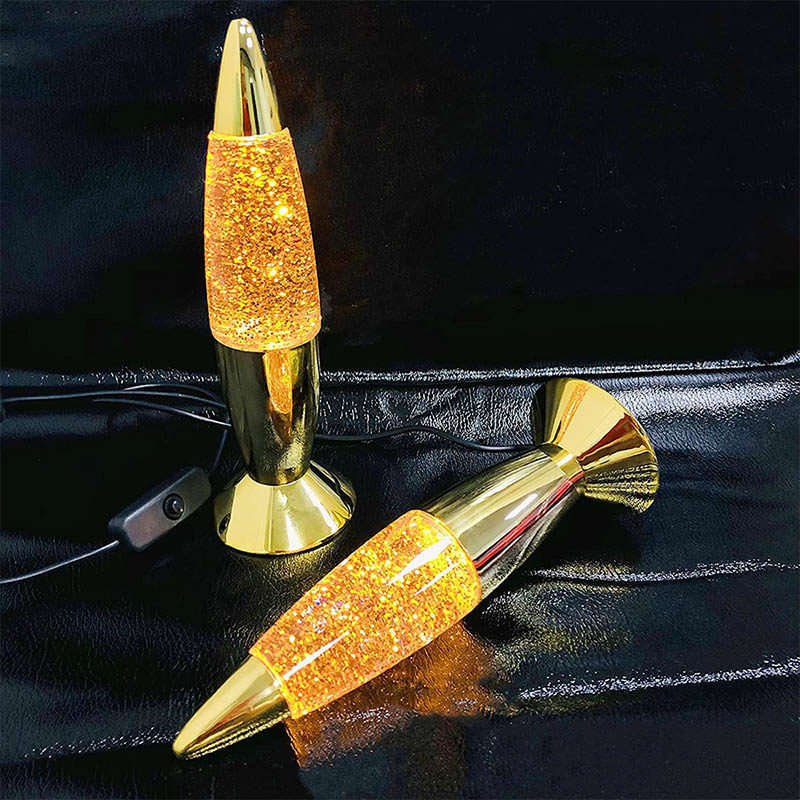 La lámpara con purpurina de 7 pulgadas tiene líquido dentro de la botella. El líquido se mueve irregularmente después de calentarse. Hay botellas de diferentes pulgadas y diferentes estilos de colores.