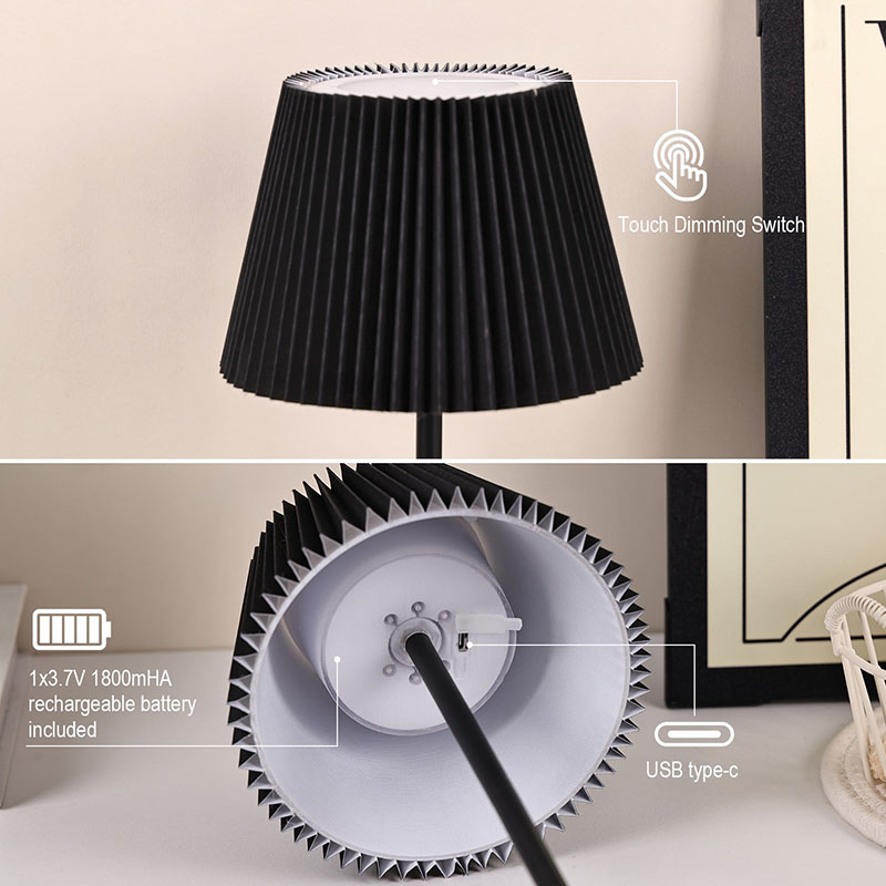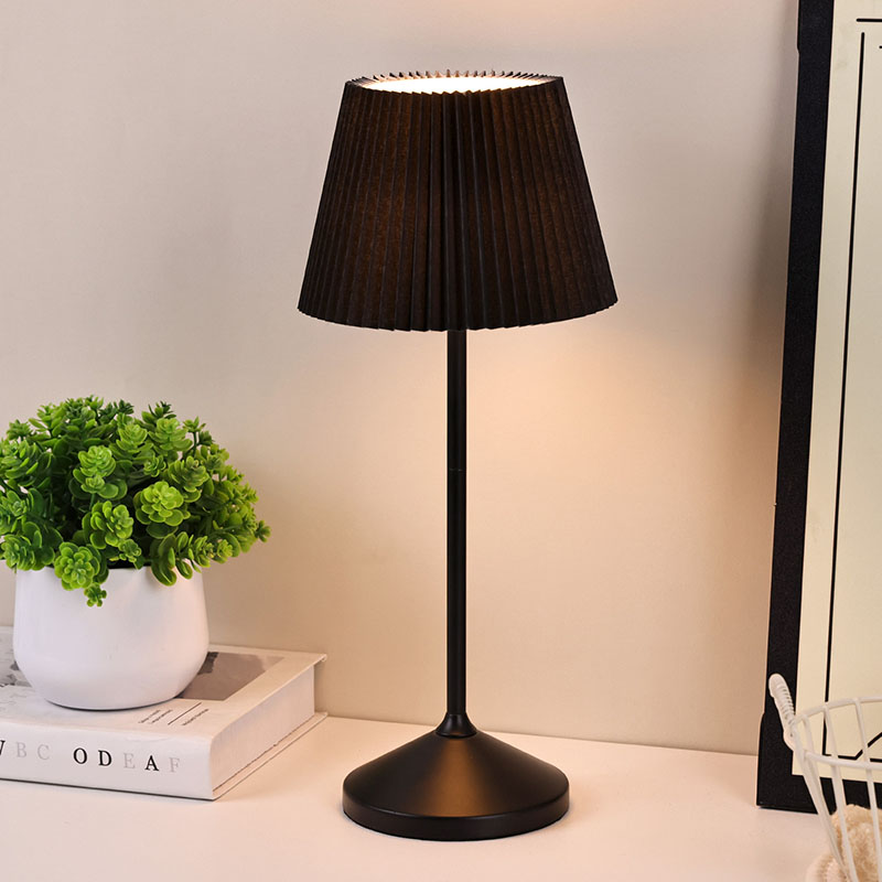 La lámpara de escritorio LED negra con pantalla de tela está equipada con tres niveles de función de atenuación, que pueden satisfacer sus diversas necesidades en diferentes escenarios. Cuando desee crear un ambiente tranquilo y relajante para dormir, simplemente ajústelo suavemente al nivel más bajo y la luz suave y cálida será como una luna brillante, proyectando un brillo sereno y acompañándolo para dormir tranquilamente. La lámpara de escritorio LED negra con pantalla de tela también tiene una batería incorporada, lo que mejora en gran medida su comodidad de uso con su cuidadoso diseño.