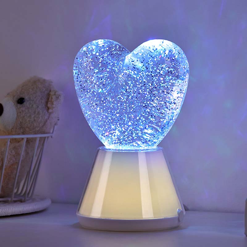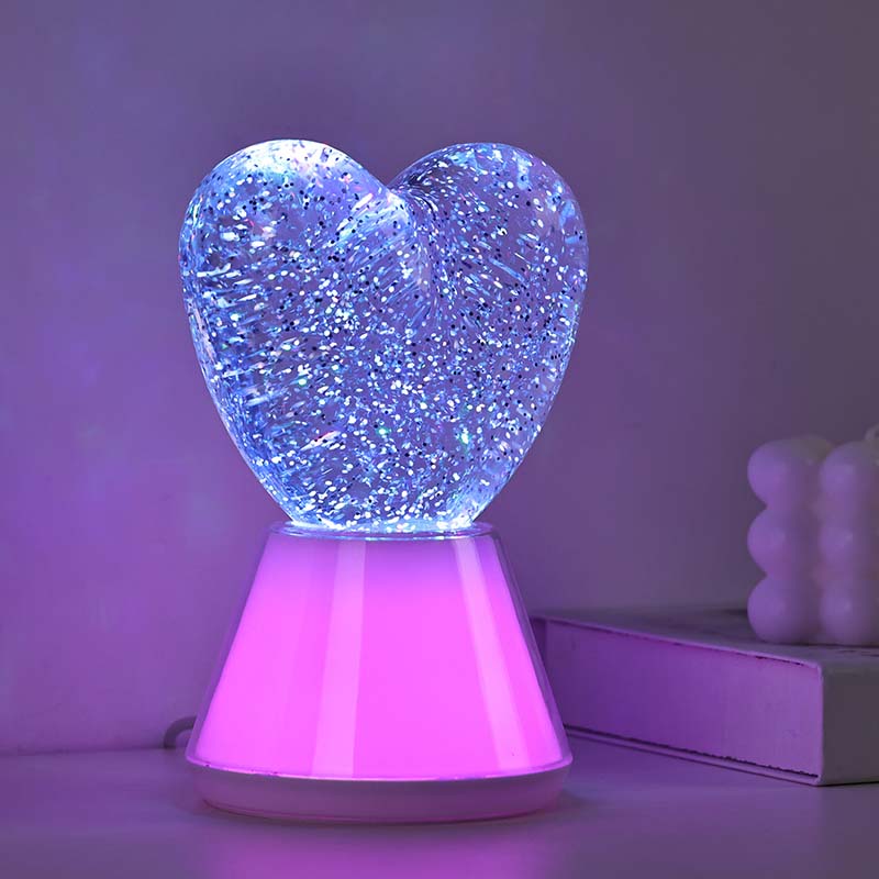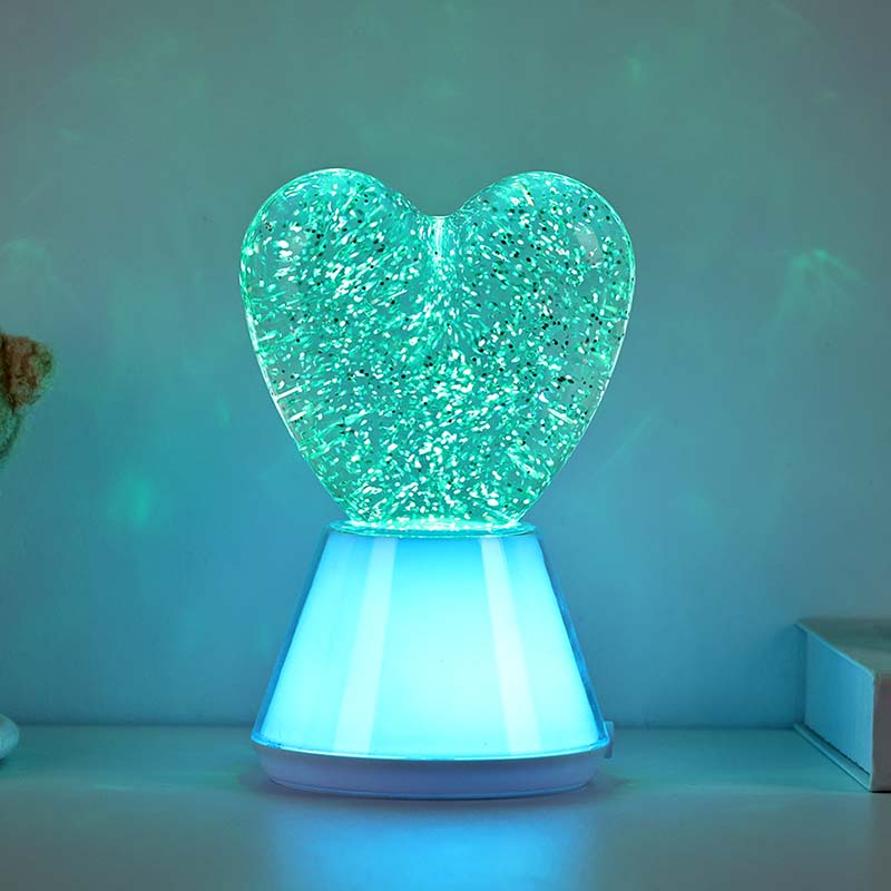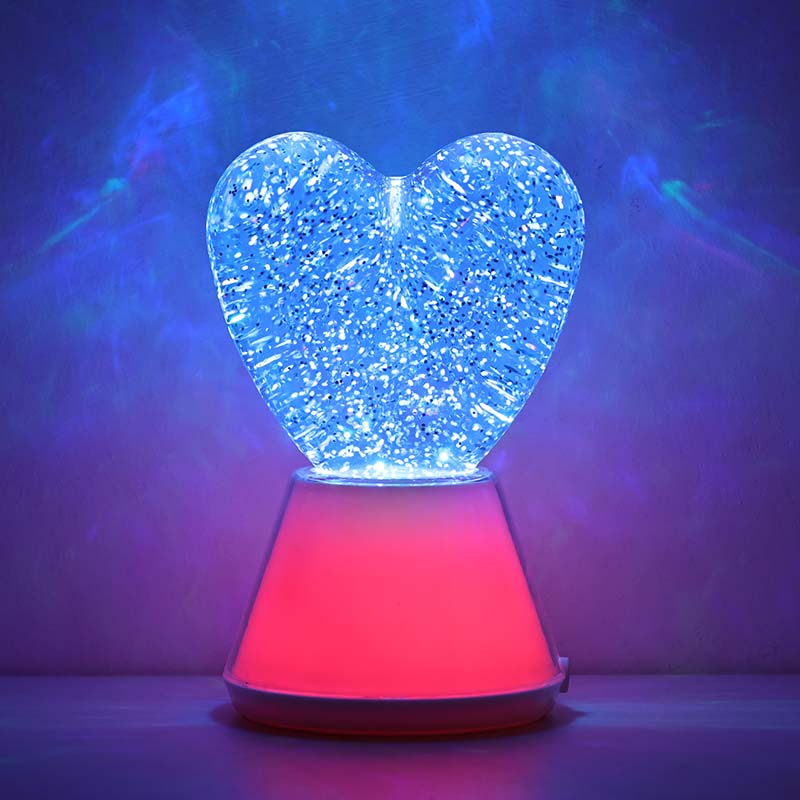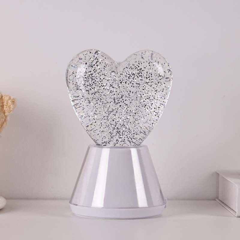 Luz nocturna con purpurina líquida que cambia de color y pantalla de corazón. presenta una exquisita bola de vidrio llena de un líquido misterioso, en el que flotan lentejuelas brillantes. Milagrosamente, la luz nocturna con purpurina líquida que cambia de color y un tono de corazón parece bailar en un mundo mágico.