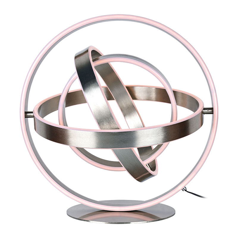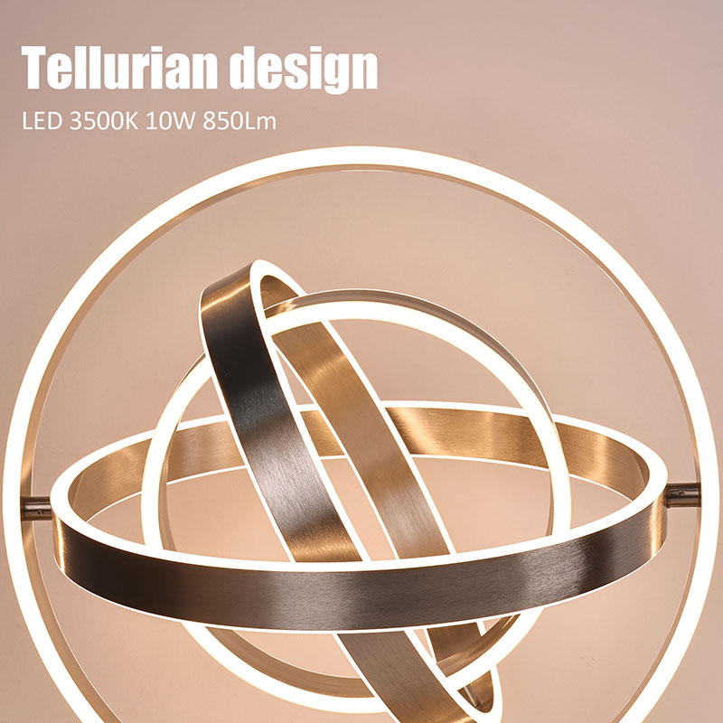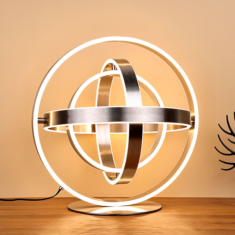 Elexquisita lámpara de escritorio ledse compone de múltiples lámparas LED anulares, con luces LED cortadas en cada periferia anular. El diseño anular puede girar en forma esférica