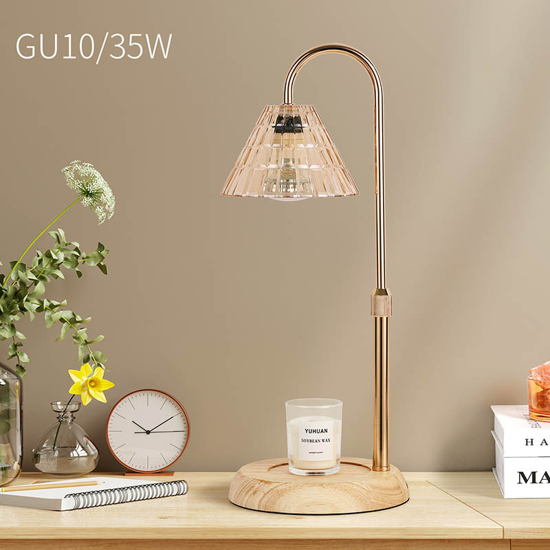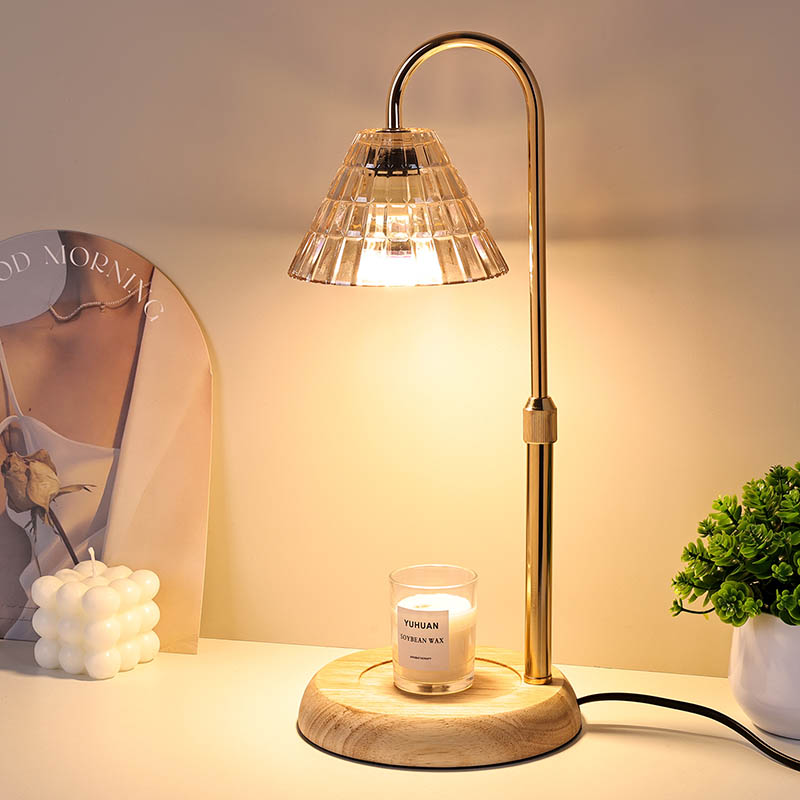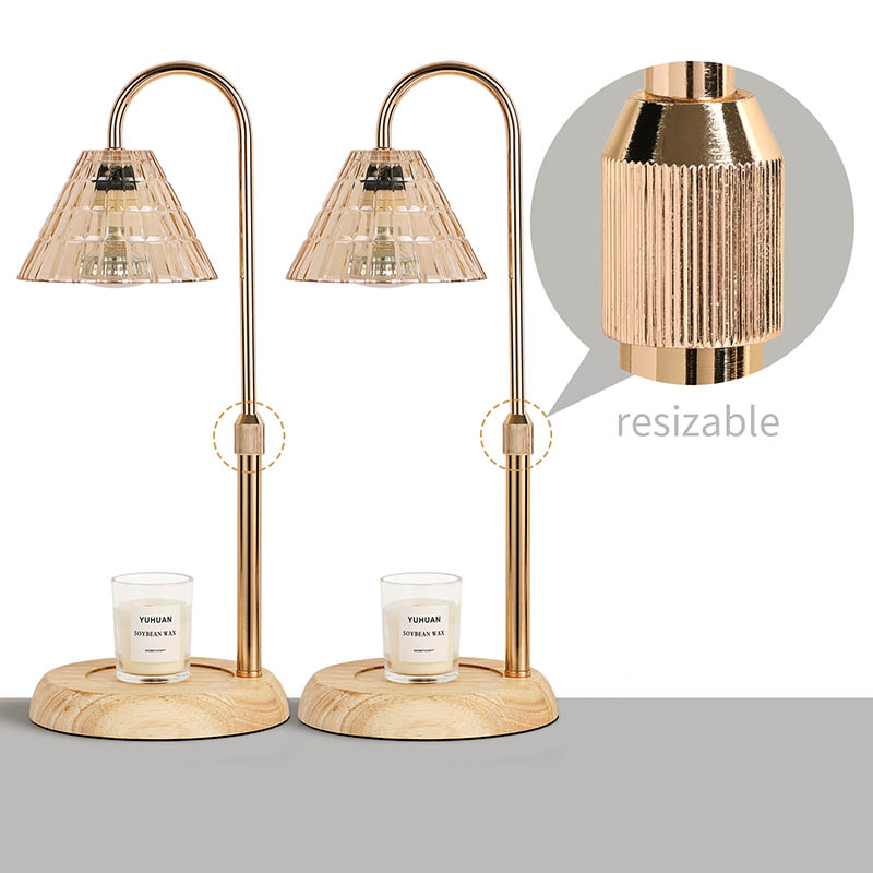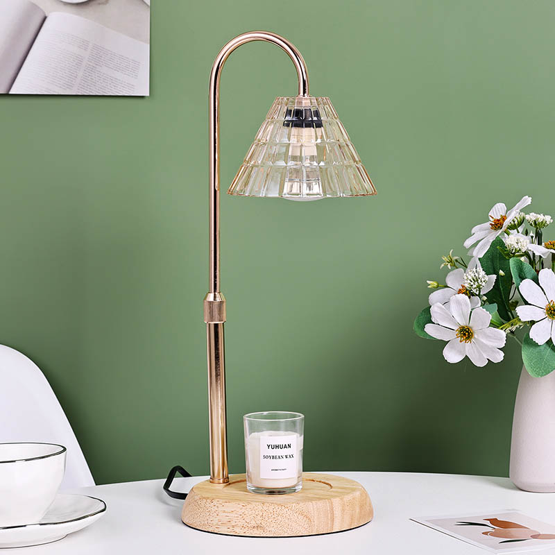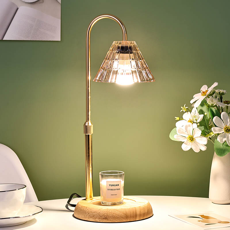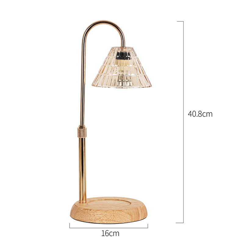 La lámpara de mesa con pantalla de vidrio y ajuste de altura es un estilo de diseño tradicional que consta de una bombilla tradicional con una base de madera y un poste de luz de metal dorado.
