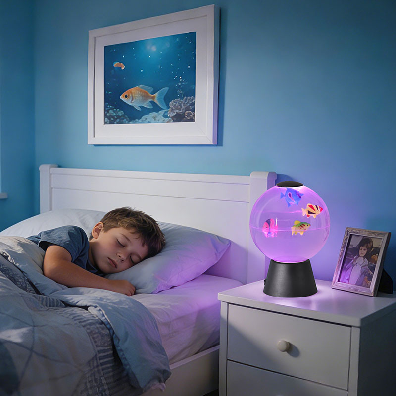 Descripción del producto: Lámpara LED con forma de globo de pez animado: una experiencia mágica en un mini acuario