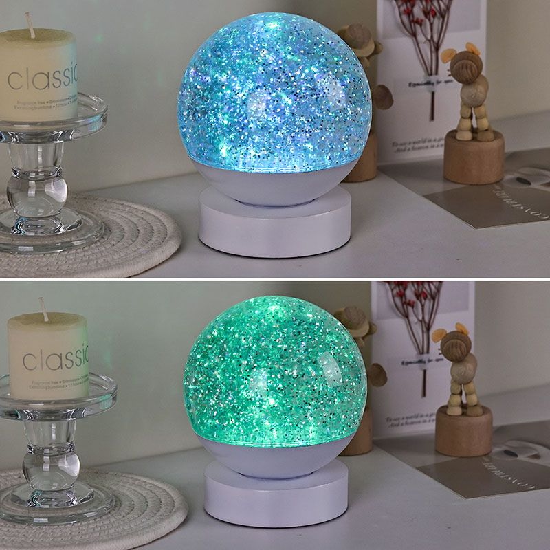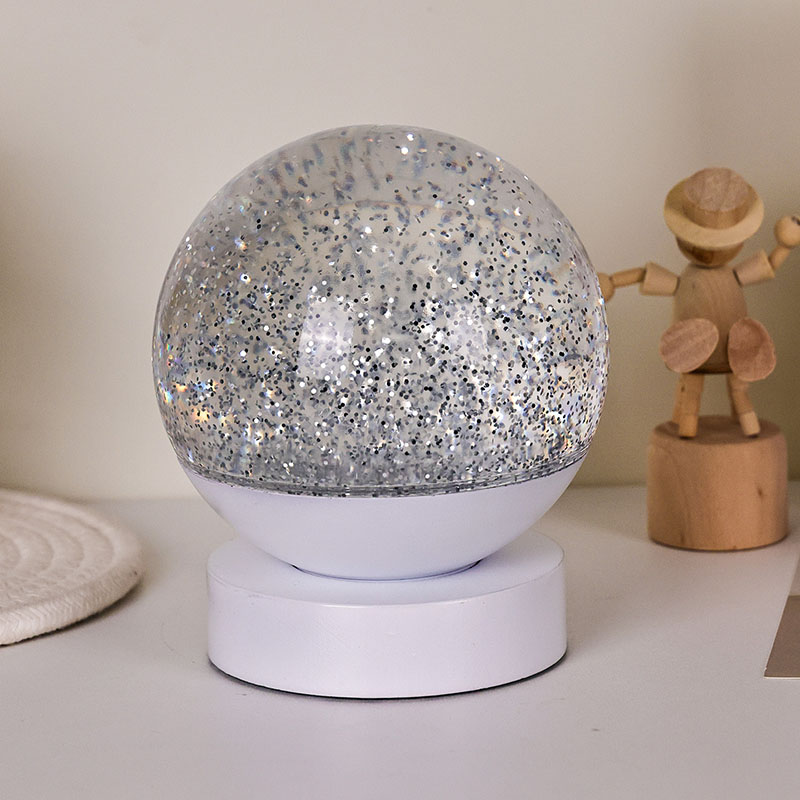 El efecto único de "luz y sombra que fluyen" hace que toda la esfera parezca un planeta que respira, con luces flotantes y arremolinadas en el líquido, asemejándose al lento flujo de la Vía Láctea ante tus ojos. Ya sea un suave compañero durante el sueño nocturno o una decoración deslumbrante para fiestas navideñas, siempre puede ser el punto focal. Además, presenta un funcionamiento silencioso, lo que garantiza que no perturbará el sueño de los niños, lo que la convierte en una luz nocturna relajante ideal.
