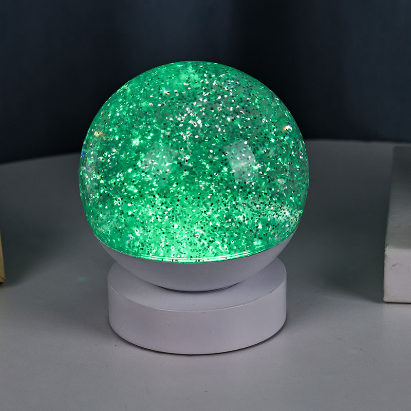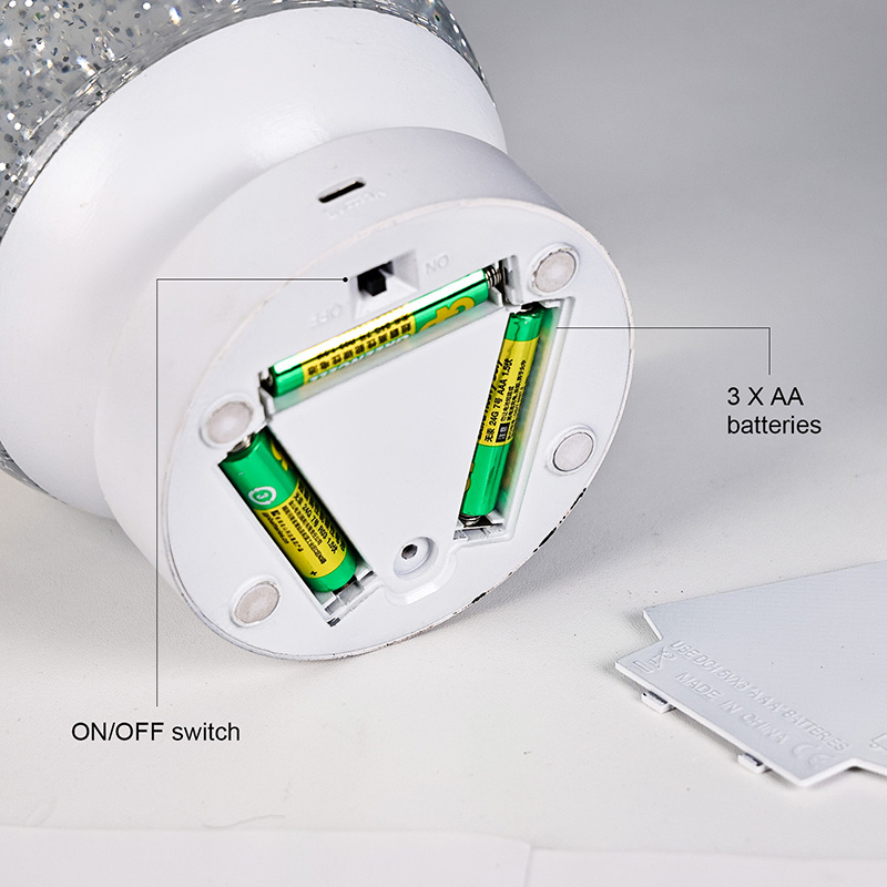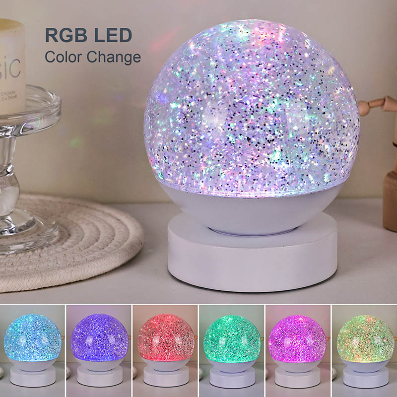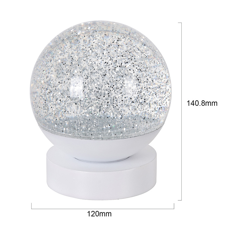 La lámpara Led RGB Glitter Decor está hecha de material acrílico de alta calidad y presenta una esfera translúcida con excelente transmisión de luz. La base está fabricada con plástico ABS ecológico, lo que garantiza estabilidad, durabilidad y seguridad sin sustancias tóxicas. Funciona con tres pilas AAA integradas (las pilas se venden por separado), lo que elimina la necesidad de una toma de corriente y ofrece un uso cómodo. Perfecto para colocarlo junto a la cama, el escritorio o en el rincón de juguetes de un niño. Con un simple interruptor táctil, la luz se puede encender o apagar fácilmente, lo que hace que sea fácil de usar incluso para los niños para operarla de forma independiente.