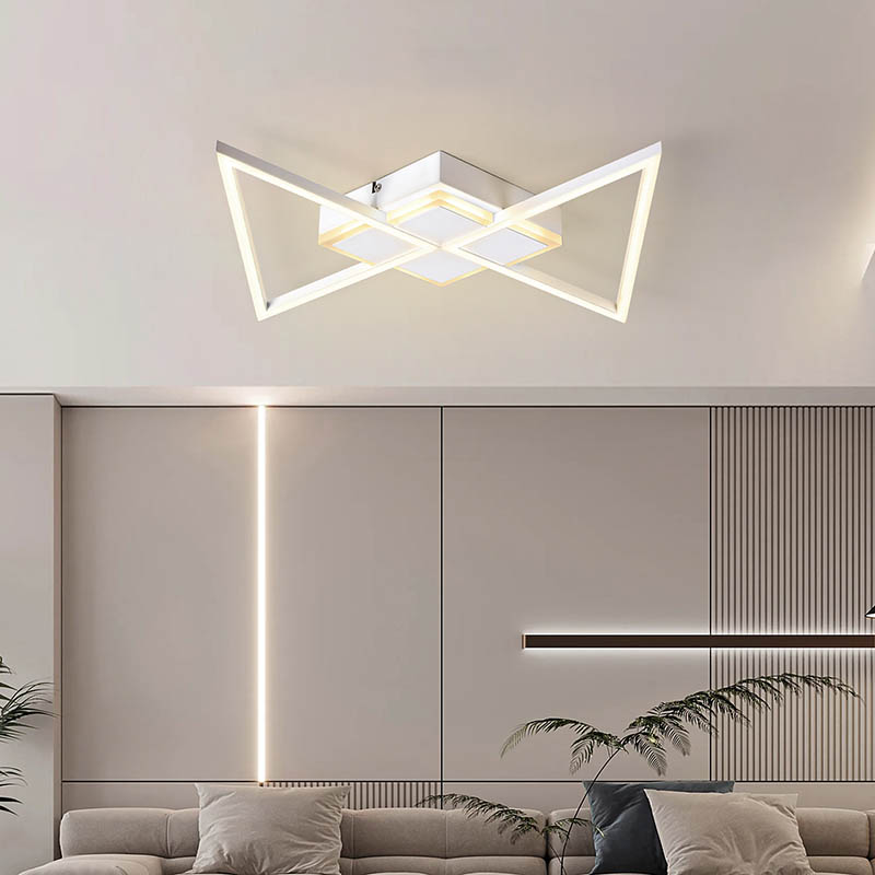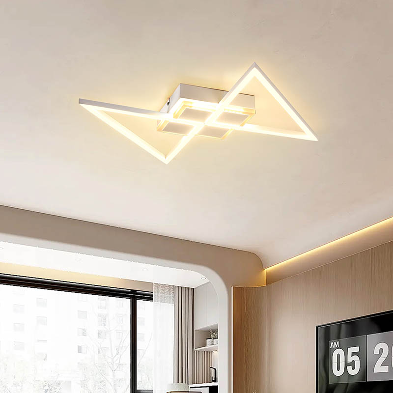 Introducción del producto: Lámpara de araña de interior con luz cálida y triángulo diagonal de metal moderno para uso en pasillos