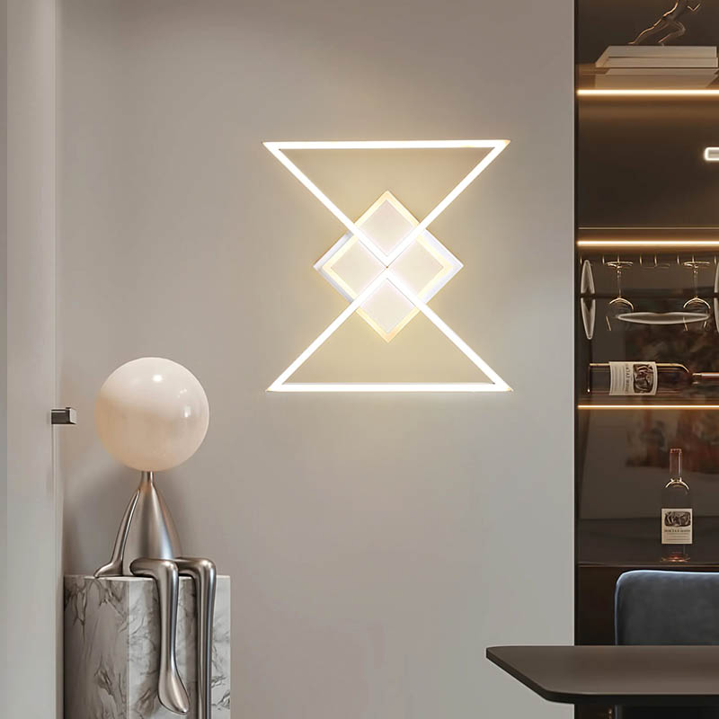 Especificaciones: Material: Metal de alta calidad Diseño: Triángulo diagonal geométrico moderno Iluminación: