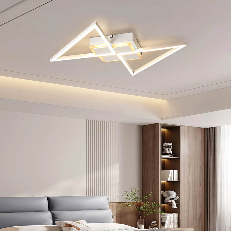 La luz cálida también resalta los detalles arquitectónicos y la decoración de su salón, agregando profundidad y dimensión al espacio. Ya sea que esté organizando una cena o simplemente disfrutando de una velada tranquila en casa, la moderna lámpara de araña triangular diagonal de metal garantiza que su salón esté bañado por una luz cálida y acogedora.