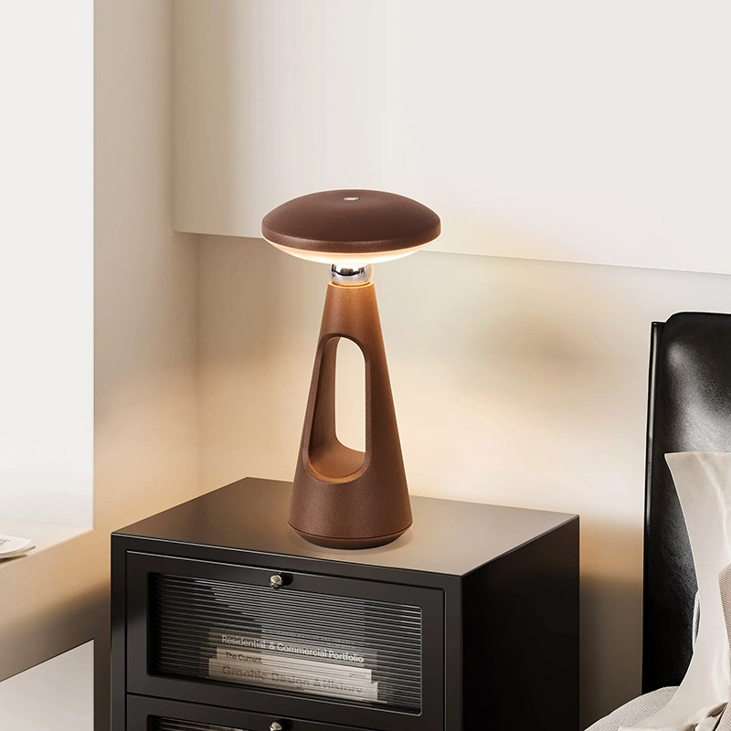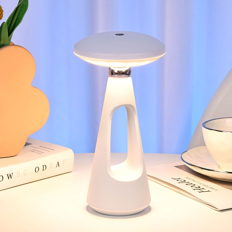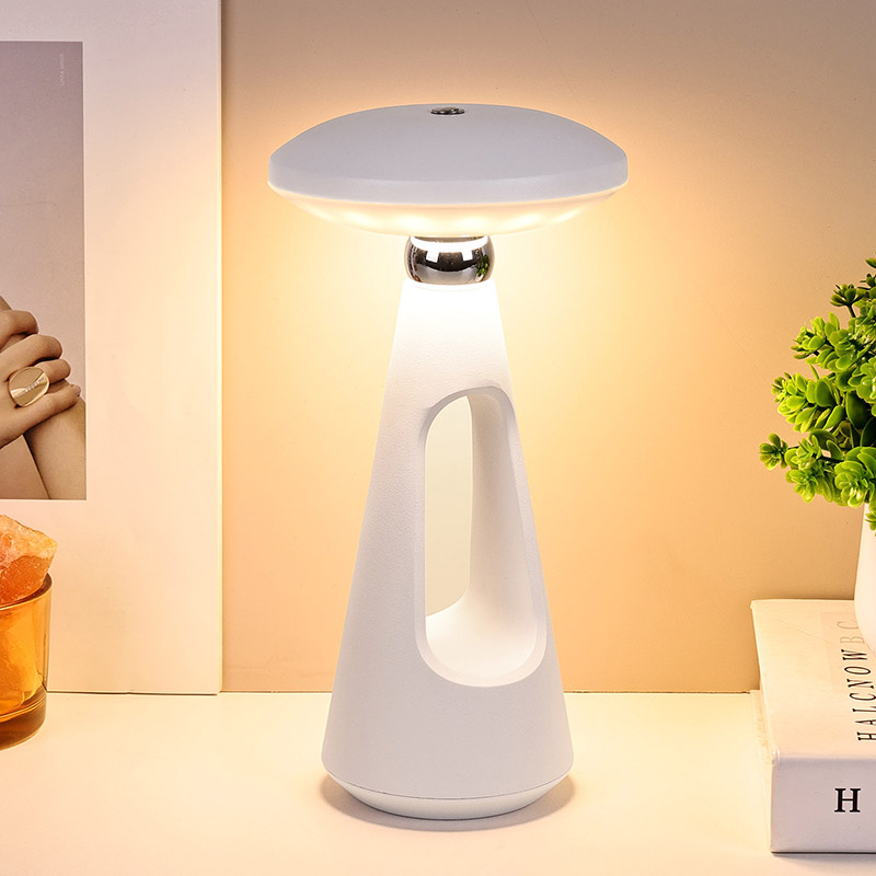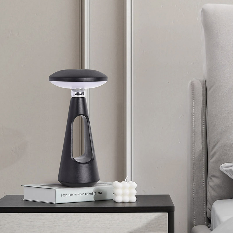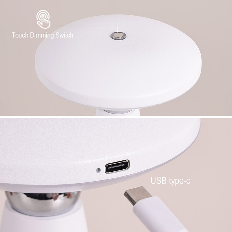 Toque el interruptor de atenuaciónLa lámpara de escritorio LED tipo hongo con batería recargable, con sus líneas simples y suaves y su forma ergonómica, su diseño en forma de hongo y cola de aguja y su lámpara de escritorio LED de luz cálida de metal, no es solo una herramienta de iluminación práctica.
