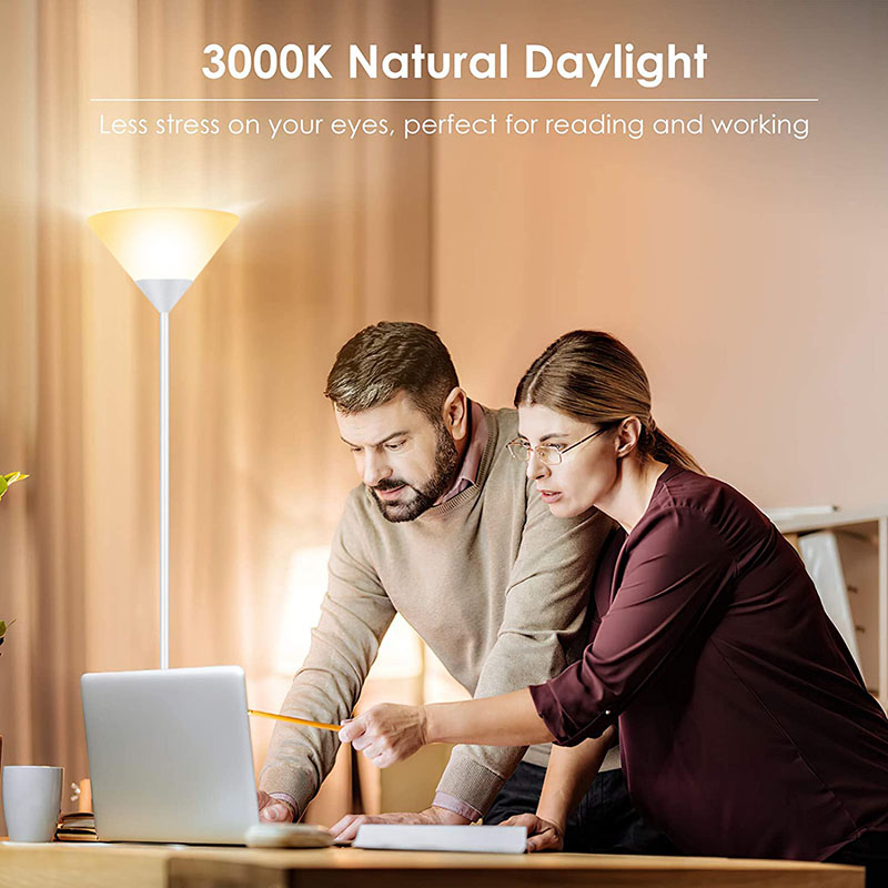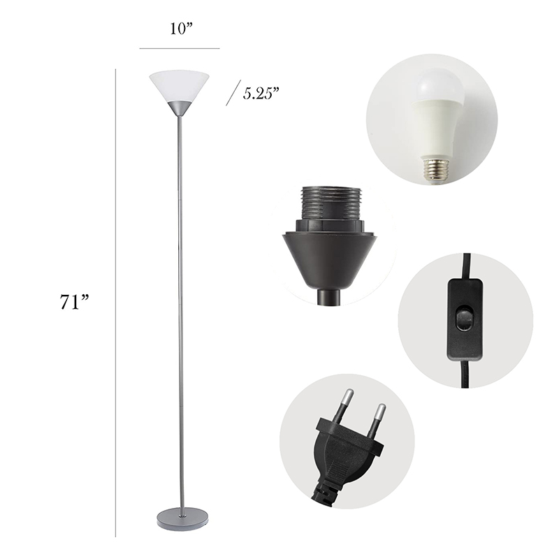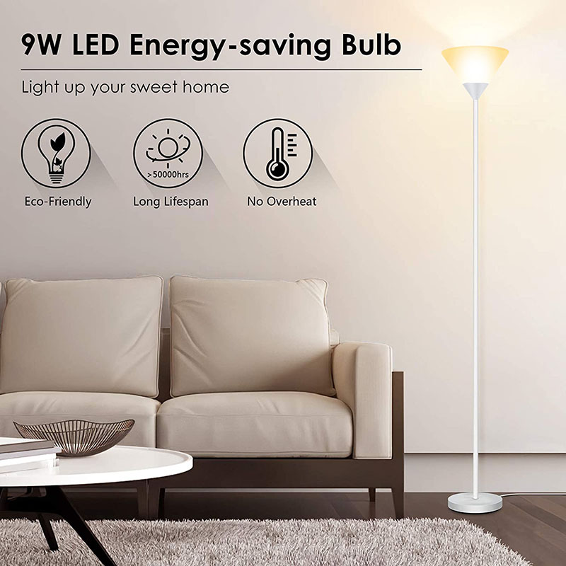 la cubierta del piso de la lámpara con una bombilla LED de bajo consumo de 9W. La bombilla del producto se ilumina hacia arriba para evitar deslumbramientos y proteger sus ojos.