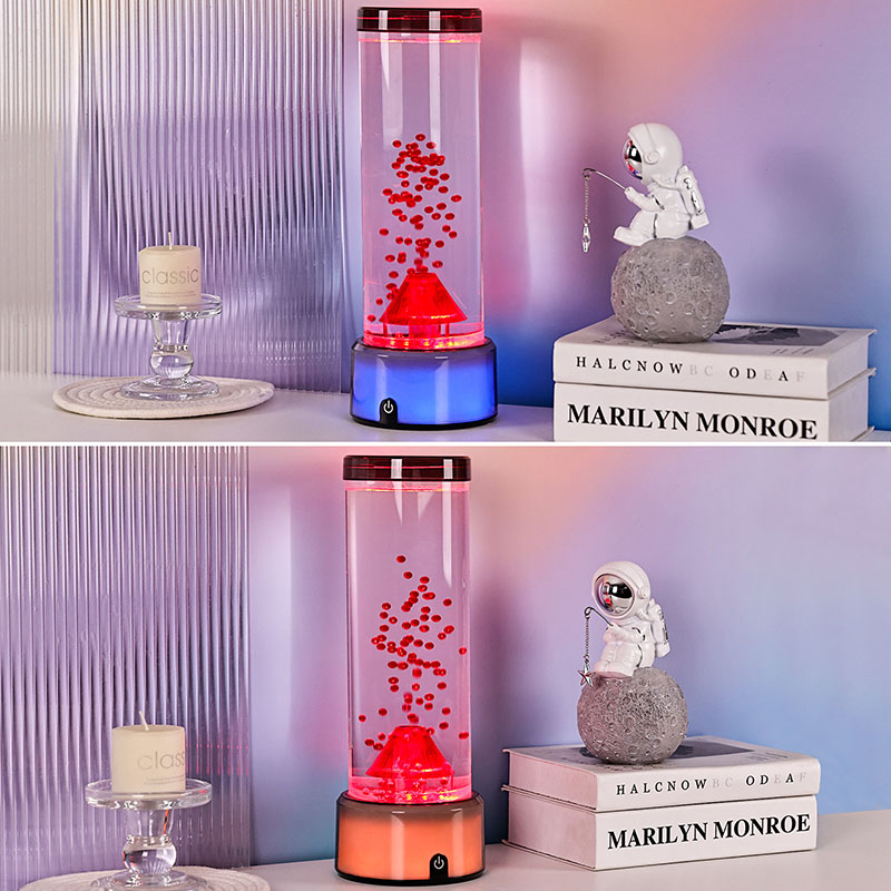 Además, la lámpara fomenta la curiosidad y la imaginación. Los niños pueden inventar historias sobre mundos submarinos donde los volcanes se encuentran con medusas, fomentando la creatividad y el desarrollo cognitivo. Los adultos pueden verse arrastrados a momentos de reflexión tranquila, apreciando la armonía entre fuerzas opuestas.