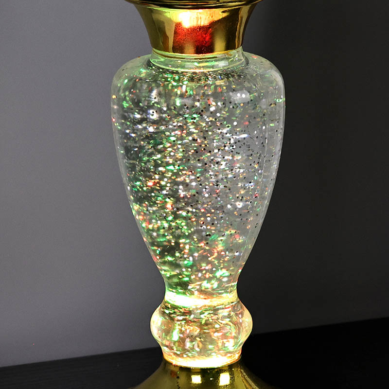 Además del efecto de flujo de líquido de ensueño, esta lámpara decorativa también tiene una función de cambio de color RGB. A través de la avanzada tecnología LED, los accesorios de iluminación pueden emitir una luz suave y uniforme y ajustar libremente el color y el brillo de la luz según las diferentes escenas y necesidades. El color de la base y el líquido cambiará sincrónicamente con el ritmo de la música y la atmósfera, creando un festín visual de luces y sombras entrelazadas. Esta lámpara decorativa está hecha de material de vidrio transparente de alta calidad, que tiene buena transparencia y durabilidad. Las botellas de vidrio transparentes no solo garantizan la estabilidad y seguridad de los accesorios de iluminación, sino que también resisten eficazmente la influencia del ambiente externo y extienden la vida útil de los accesorios de iluminación. Además, las botellas de vidrio transparente también tienen un buen rendimiento de disipación de calor, lo que garantiza que las lámparas no se sobrecalentarán durante el uso prolongado y garantizan su seguridad.