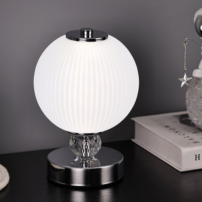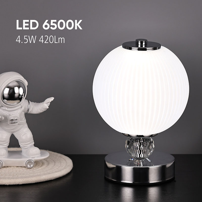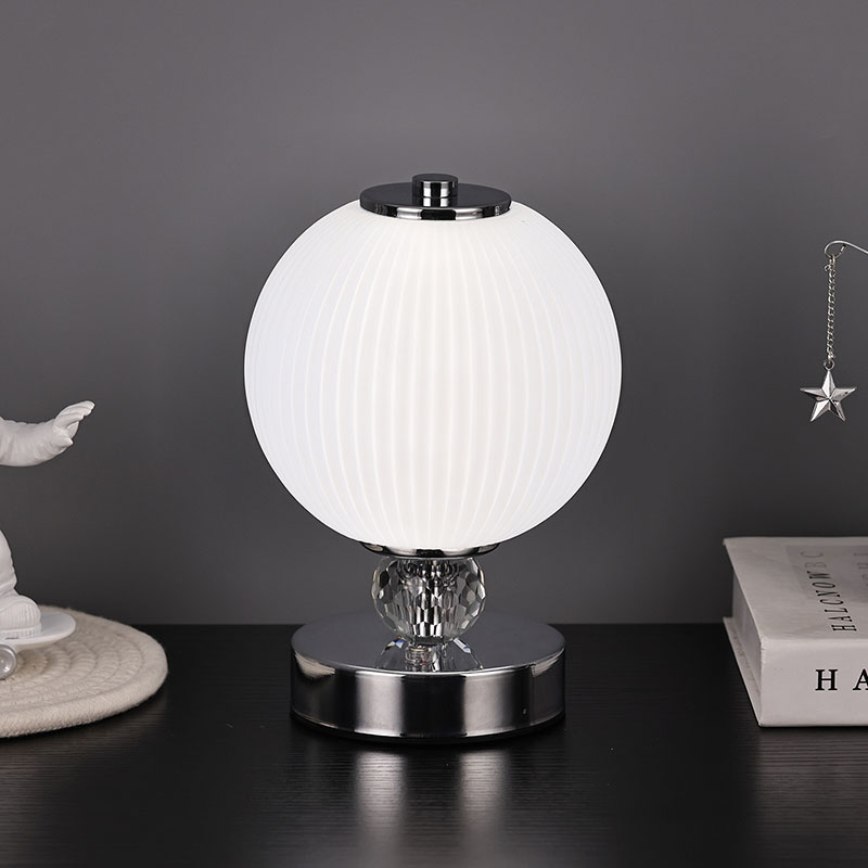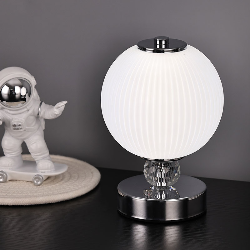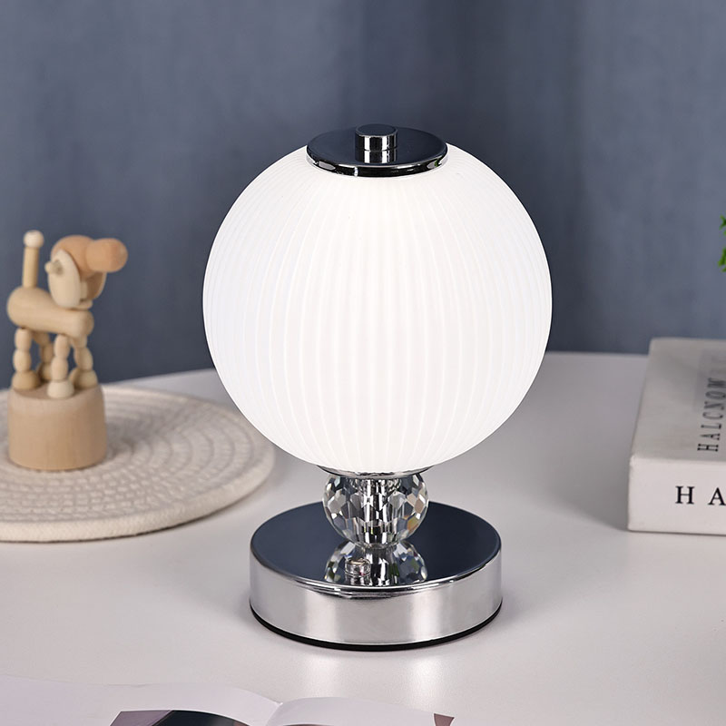 Lo más destacado de esta mini lámpara de escritorio es su exclusivo diseño de pantalla esférica. La pantalla está hecha de material de vidrio de alta calidad, con una superficie lisa y delicada y un brillo suave. El diseño de la pantalla esférica no sólo le da a la lámpara una textura pura y noble, sino que también permite que la luz se emita de manera más uniforme, creando una atmósfera suave y cálida.