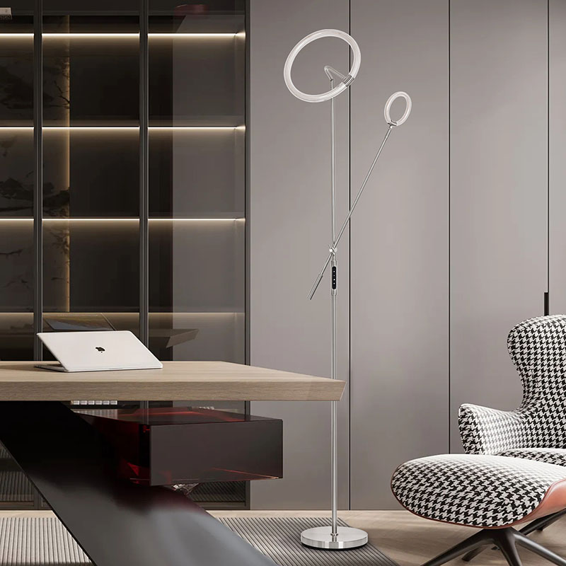 El diseño de iluminación ambiental no solo otorga a las lámparas un efecto visual único, sino que también difunde la luz de manera efectiva, haciéndola más suave y uniforme. El poste de luz y la base de esta lámpara de pie han sido finamente pulidos y tratados, con una superficie suave y delicada y una sensación cómoda al tacto.
