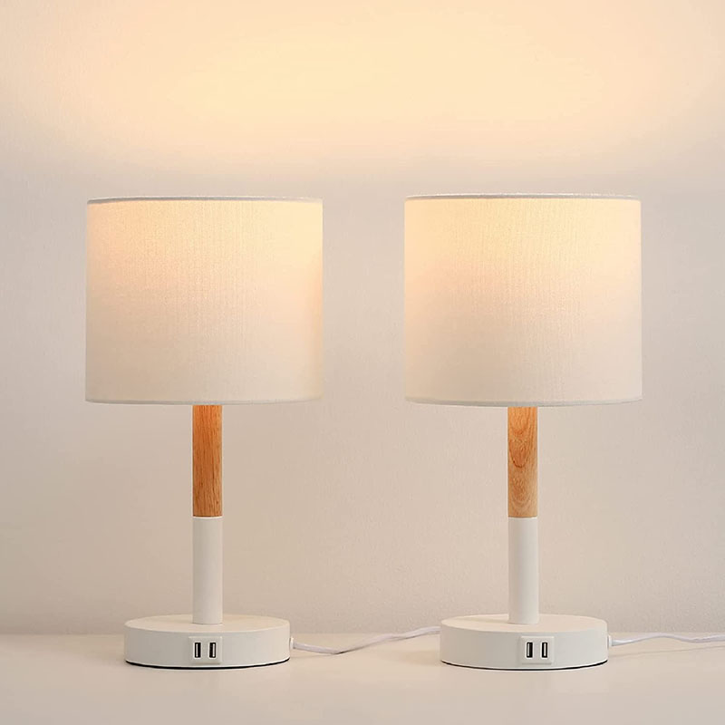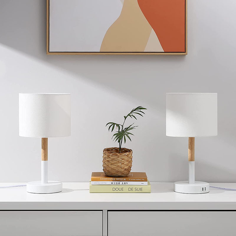 El efecto de la lámpara de mesa de carga del puerto USB en el funcionamiento y la parte de la lámpara. Se puede ensamblar como parte de una base de plástico. La base tiene 2 puertos de carga USB en el interior.