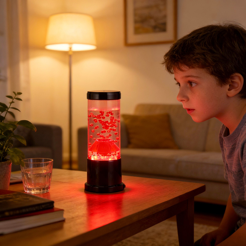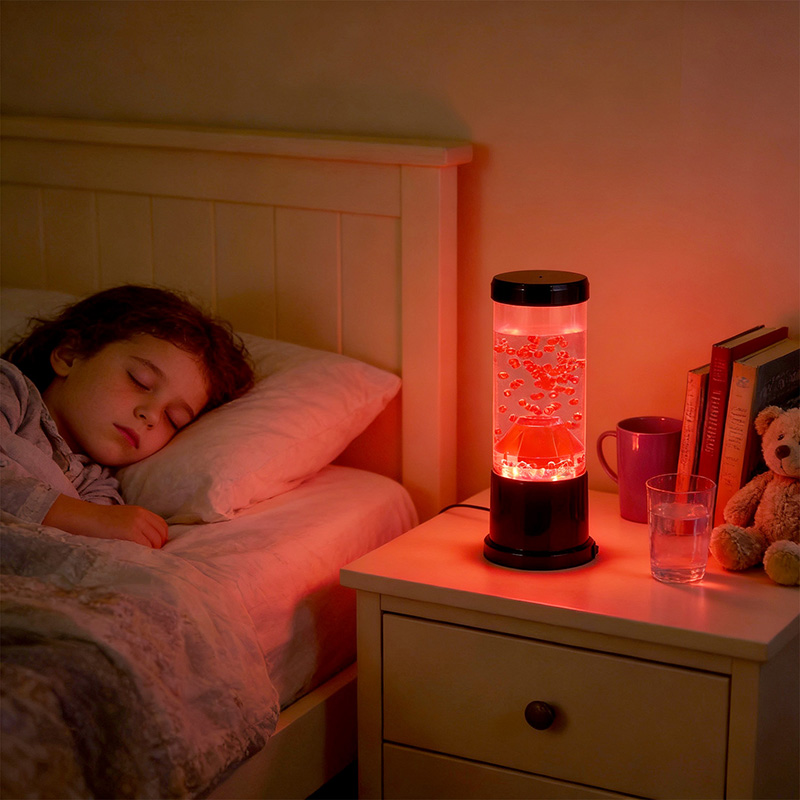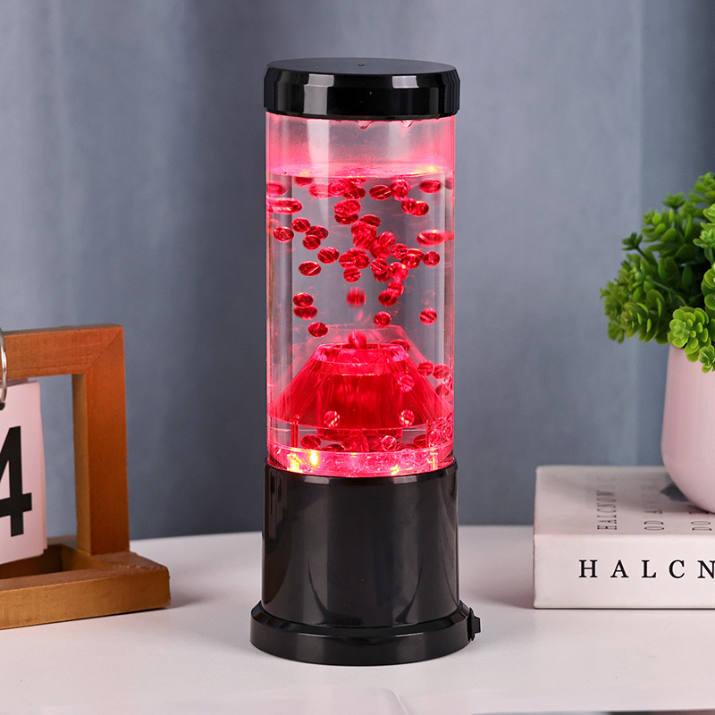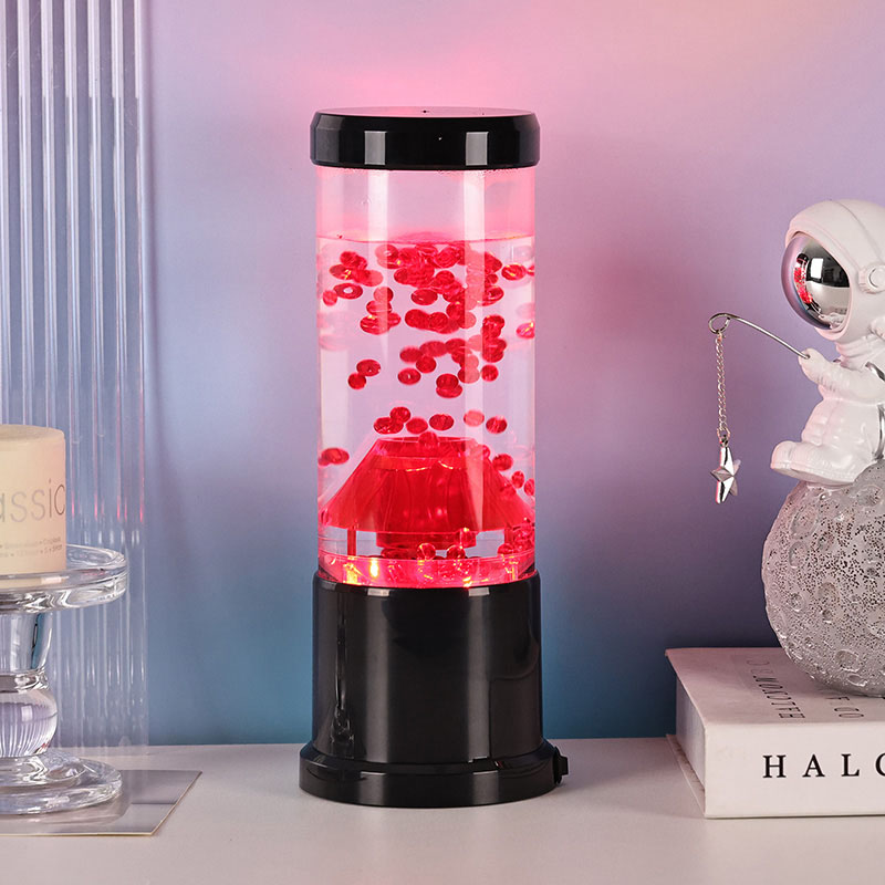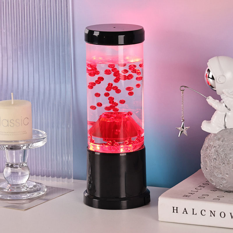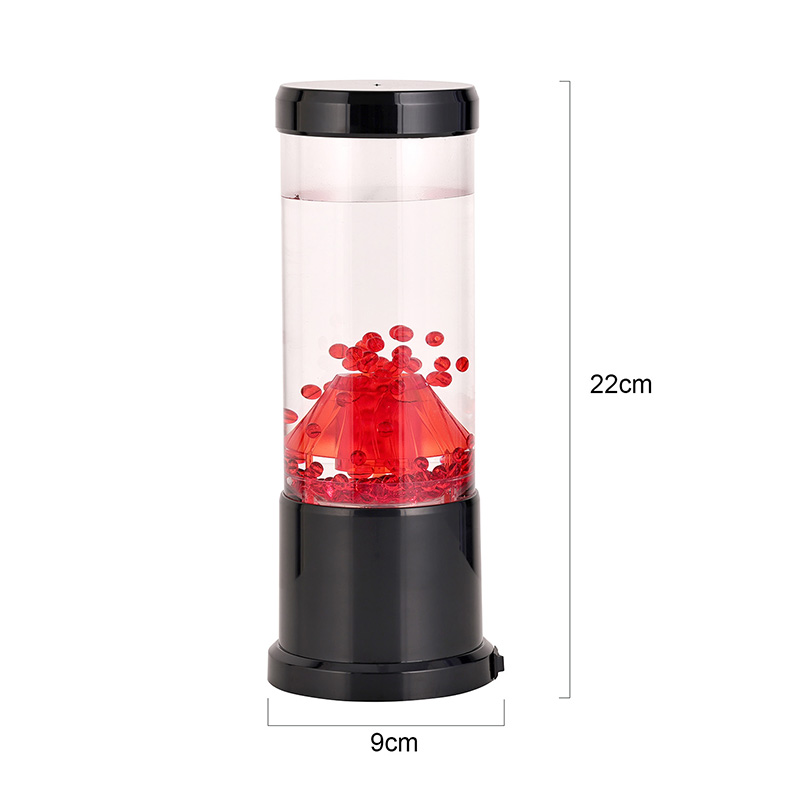 La pieza central de la luz nocturna es una columna transparente que recuerda a un cráter volcánico. Dentro de esta columna, encontrará una exhibición vibrante de esferas rojas, que recuerdan a la lava fundida que fluye dentro de la corteza terrestre. Estas esferas flotan con gracia dentro de un líquido transparente, creando un efecto visual dinámico y en constante cambio. A medida que la luz brilla, proyecta un brillo cálido y acogedor, perfecto para crear un ambiente acogedor en cualquier habitación.